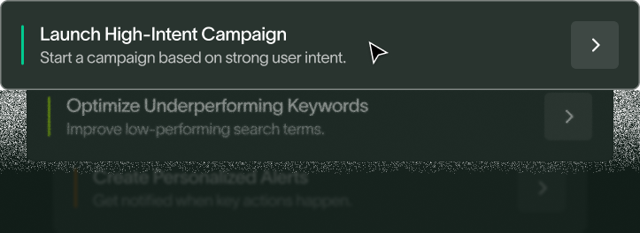Suggested next steps and campaign-ready outputs like alerts, tips, tasks.